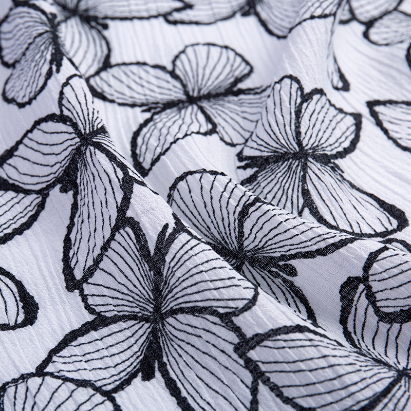 | 10-8 (prikaz, ostalo). | 17% najlon, 83% rajon | 20D*30s | 105GSM | 57/58 | Bojanje, gužvanje, razne tehnike tiska, vez, vrući žig, flokiranje itd. | Mekana i prozračna, prikladna za proljetnu i ljetnu modu, haljine, košulje, odjeću za plažu, ležerne hlače, zavjese, navlake za sofe itd. |